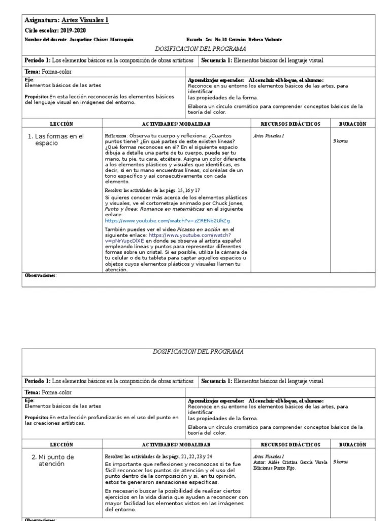 _____ dosificacion del programa periodo 2: .. Artes visuales 3 oscar alonso lara.